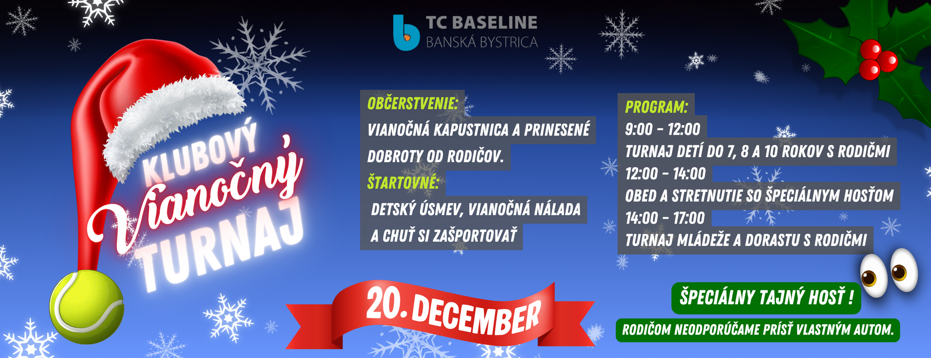 Všetkých hráčov klubu a ich rodinných príslušníkov pozývame na Vianočný turnaj rodič/dieťa, ktorý sa uskutoční v piatok 20. 12. 2025. Viacej informácií u vašich trénerov!